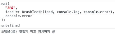 if (food === "초밥") onSuccess(`${food}을(를) 맛있게 먹고 양치까지 끝`);