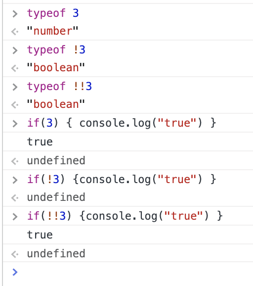 console.log(typeof !!3) Boolean