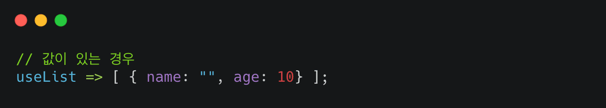 즉 [] -> [ { name: "", age: 0 } ] 으로 변경이 되어야 한다.