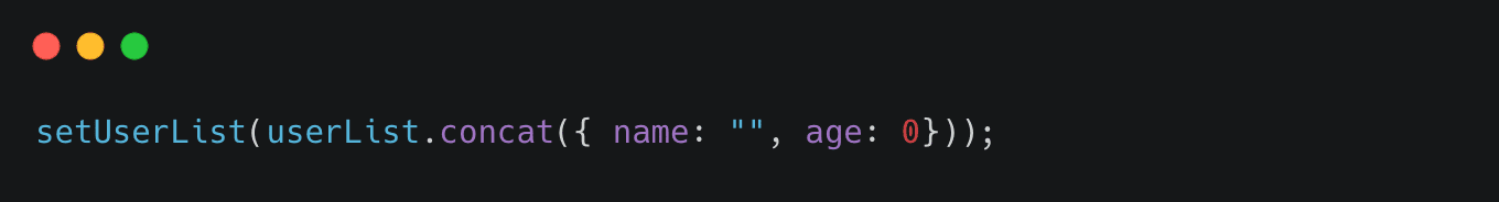 concat 함수는 새로운 배열을 return 해주기 때문에 기존 userList와 주소 값이 다르다.