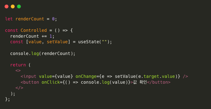 controlled component : state로 input 데이터를 다루는 컴포넌트