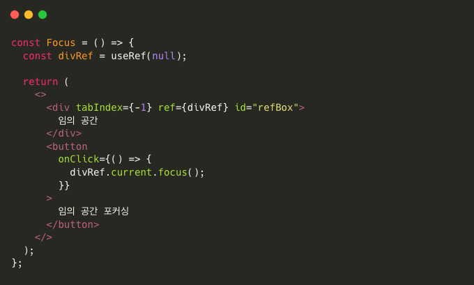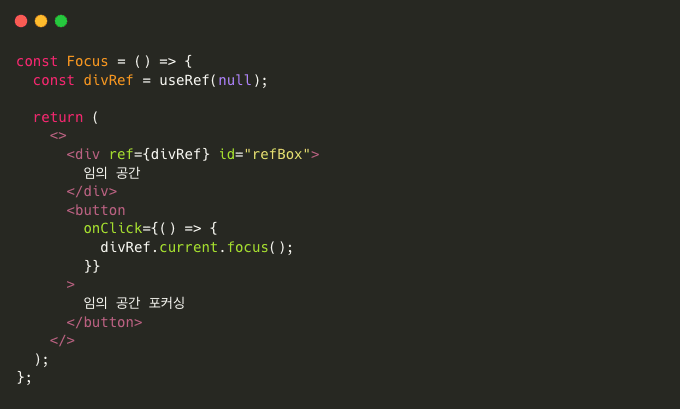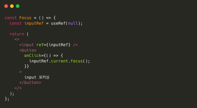 보통 이렇게 DOM에 접근하여 focus 하는 곳에 많이 사용됩니다.