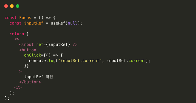 위 코드를 보면 input element에 ref로 inputRef를 연결해주었습니다.