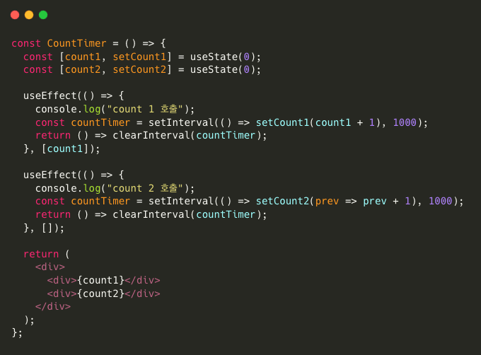 따라서 count1 state를 의존성 배열에 넣어 count1이 변경될 때마다 재호출 되었습니다.