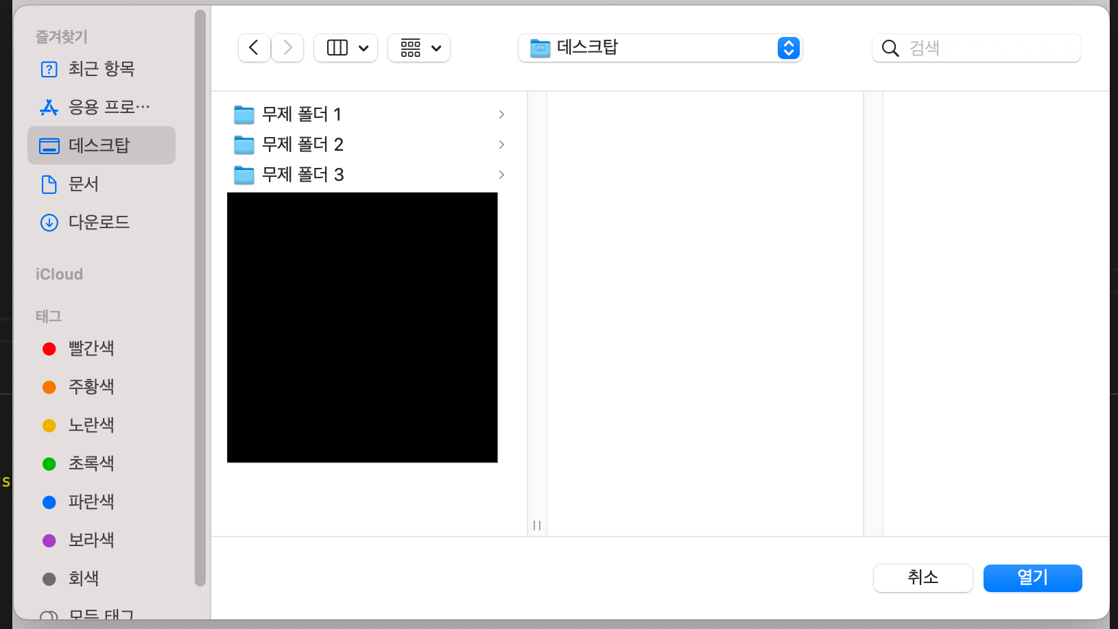위 코드를 실행하면 아래 이미지처럼 폴더 선택 창이 표시됩니다.