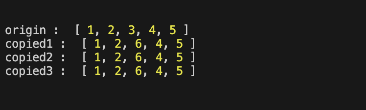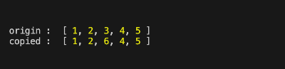 아래 배열이 있고 2번째 인덱스의 값인 3을 6으로 변경해보도록 하겠습니다.