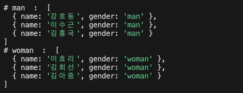 비교해준 기준으로 그룹핑이 되어 return이 된 것을 확인할 수 있습니다.