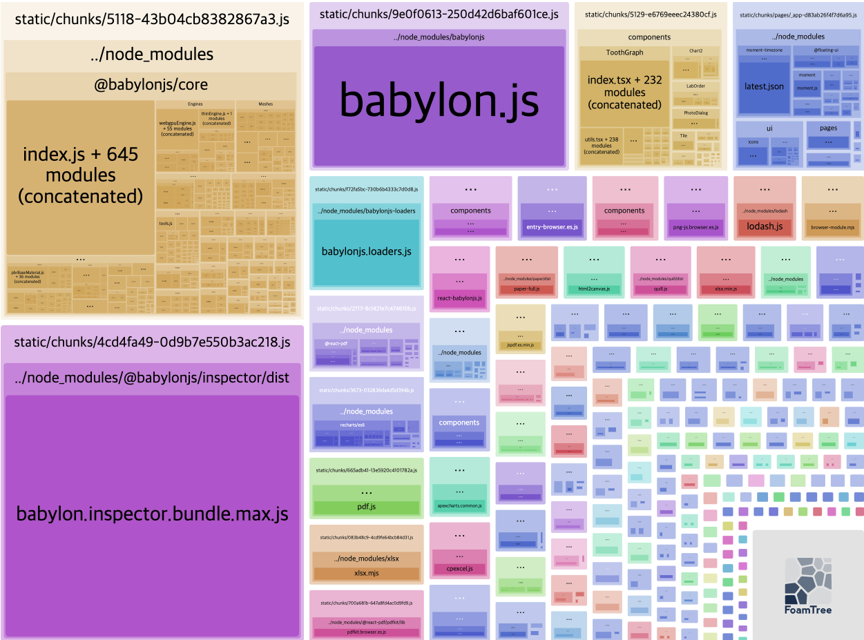 보시면 babylonjs 관련 패키지가 엄청 큰 것을 확인하실 수 있습니다.