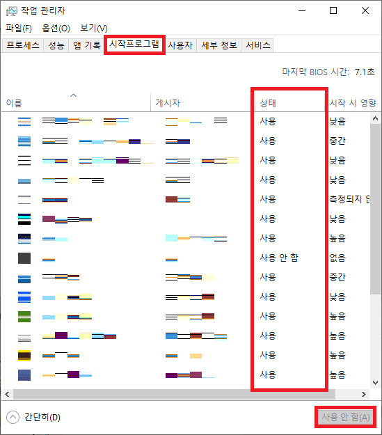 2. 시작프로그램 탭으로 이동