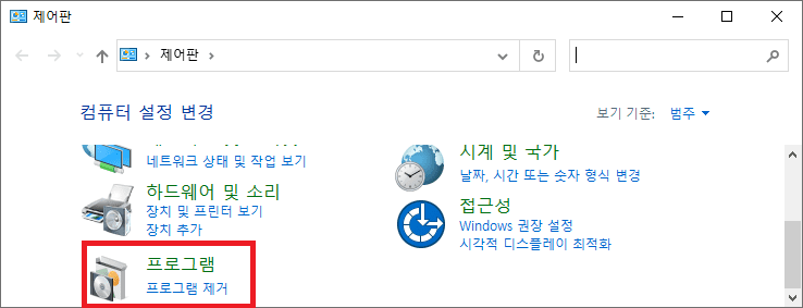 윈도우에 제어판을 검색하여, 제어판을 클릭한 후, 오픈된 창에서 프로그램 제거를 클릭하자.