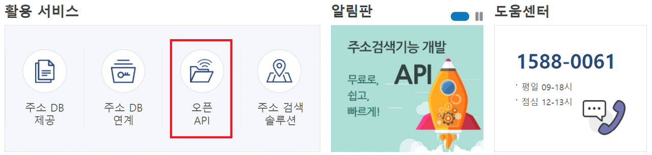 해당 사이트로 이동 후 하단에 보이는 오픈 API를 클릭하자. 바로가기