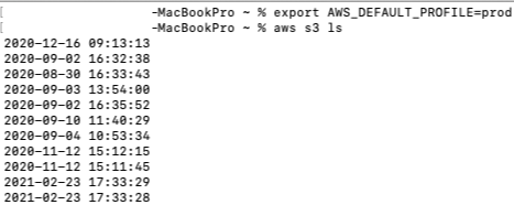 그럼 해당 터미널에서 2번째 계정을 사용할 수 있다. 변경 유무는 aws s3 ls 명령어를 통해 bucket list를 확인해보도록 하자.