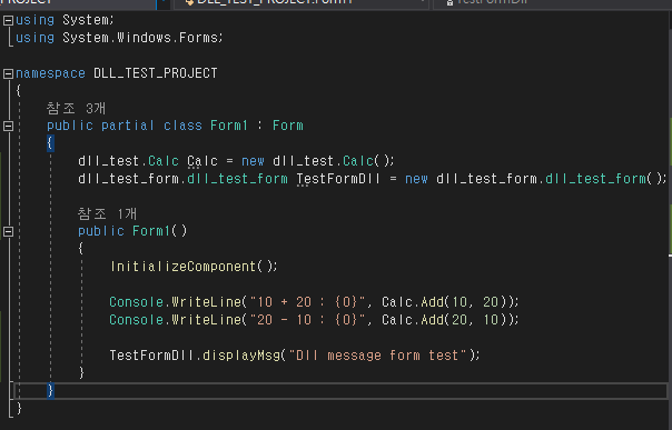 8. 해당 dll을 사용하는 코드를 간단하게 작성해보자. 아래 이미지와 코드를 참고하자.