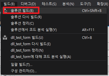 6. 프로젝트 빌드를 하여 dll 파일을 만들도록 하자.