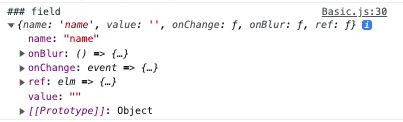 렌더링 되는 최종적인 컴포넌트이다. console.log로 field를 출력해보면 아래 이미지처럼 나온다.