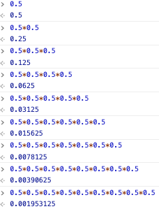 컴퓨터는 비트로 이루어져있다. 따라서 0.5씩 계속 곱하면 몇 비트를 사용해야 0.1을 표현할 수 있는 지 알 수 있다. 0.1을 표현하려면 몇 비트를 사용해야할까? 계산해보자.
