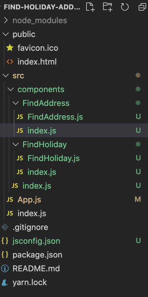 CRA를 이용하여 react 프로젝트를 생성하고 아래와 같이 폴더구조를 만들어주어야 한다. CRA로 react 프로젝트를 만드는 방법을 모르면 검색을 통하여 따라하면 된다. (추후, CRA를 통한 react 프로젝트 생성하는 방법을 알아볼 것이다.)