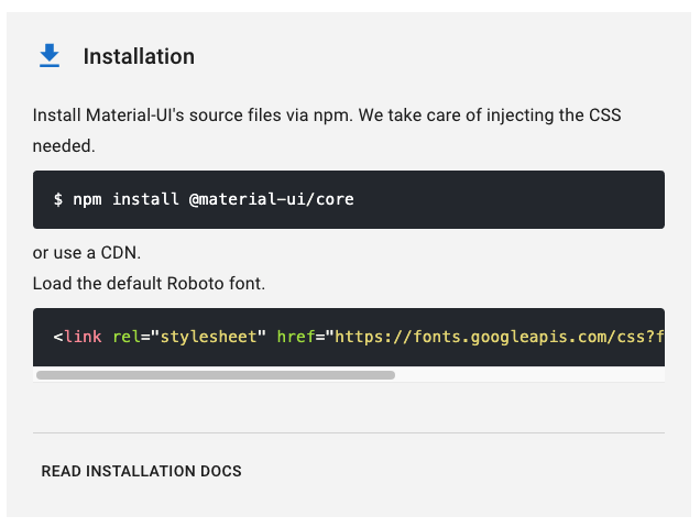 해당 사이트에 접속하면 아래와 같은 사이트가 표시될 것이다. 아주 자세하게 어떻게 사용할 수 있는 지 가르쳐주고 있다. 해당 사이트에서는 npm 명령어를 사용하여 추가하지만, 나는 yarn을 사용하여 추가하였다.
