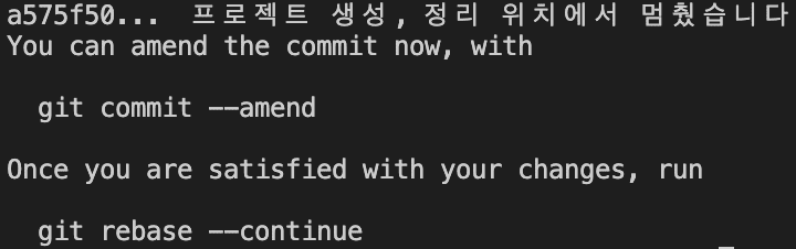명령어 : git rebase -i --root 이후 pick -> edit 으로 변경 : rebase할 commit 설정