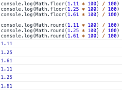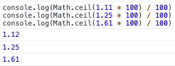소수점 2자리 올림의 경우 아래와 같이 해결할 수 있다.
