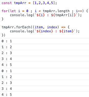 console.log(`${i} : ${tmpArr[i]}`);