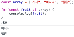 위에서 for...in으로 배열을 반복한 것을 for...of로 수정해보겠습니다.