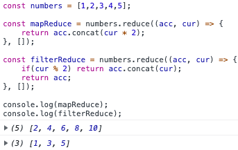 const resultWithReduce = numbers.reduce((acc, cur) => {